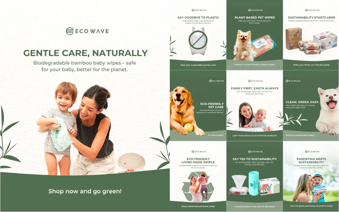 Yes — during onboarding, you can specify your preferred color palette, fonts, and overall vibe (minimal, elegant, playful, bold, etc.) so every post reflects your brand perfectly.
